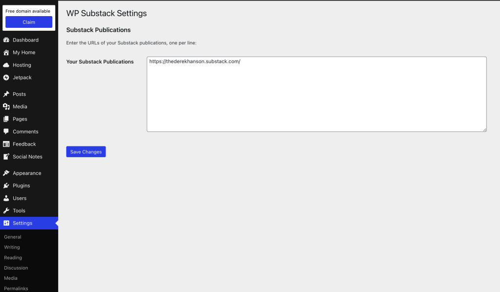 To get started writing for both WordPress and Substack, install the WordPress: Send to Substack plugin on your site. In the plugin’s settings, add your Substack publication(s) URL.