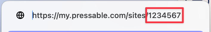 If you’re unsure where the Pressable ID comes from, it’s the end of the URL when you view the website in Pressable: