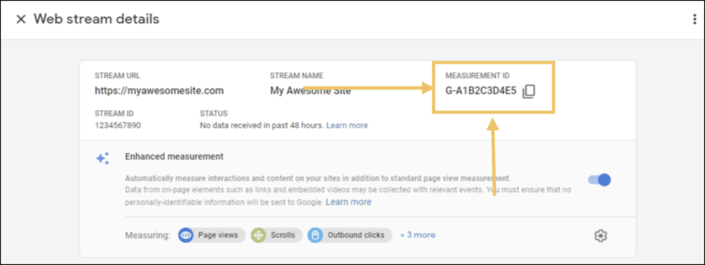 - You will then be presented with this screen that provides you with your Measurement ID.